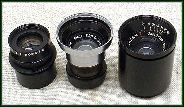 Three experimental prototype variants of the outstanding Carl Zeiss Biogon 3.5cm f/2.8 wide-angle lens, showing a continuing subtle evolution in optical design.
